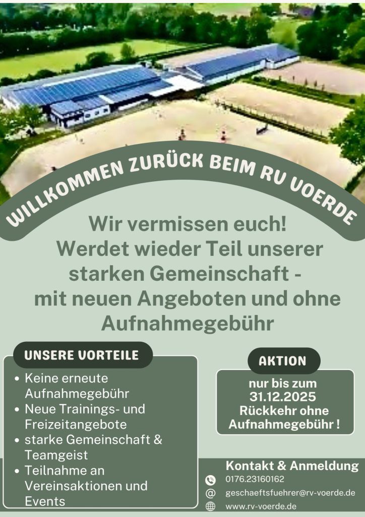 „Wir starten eine Rückholaktionfür unseren Reiterverein 🐴✨ Viele von uns sind hier groß geworden, haben Freundschaften fürs Leben gefunden und unzählige Stunden im Stall verbracht. Ein Verein lebt von seinen Mitgliedern – und wir wünschen uns genau dieses Gemeinschaftsgefühl zurück. 💛